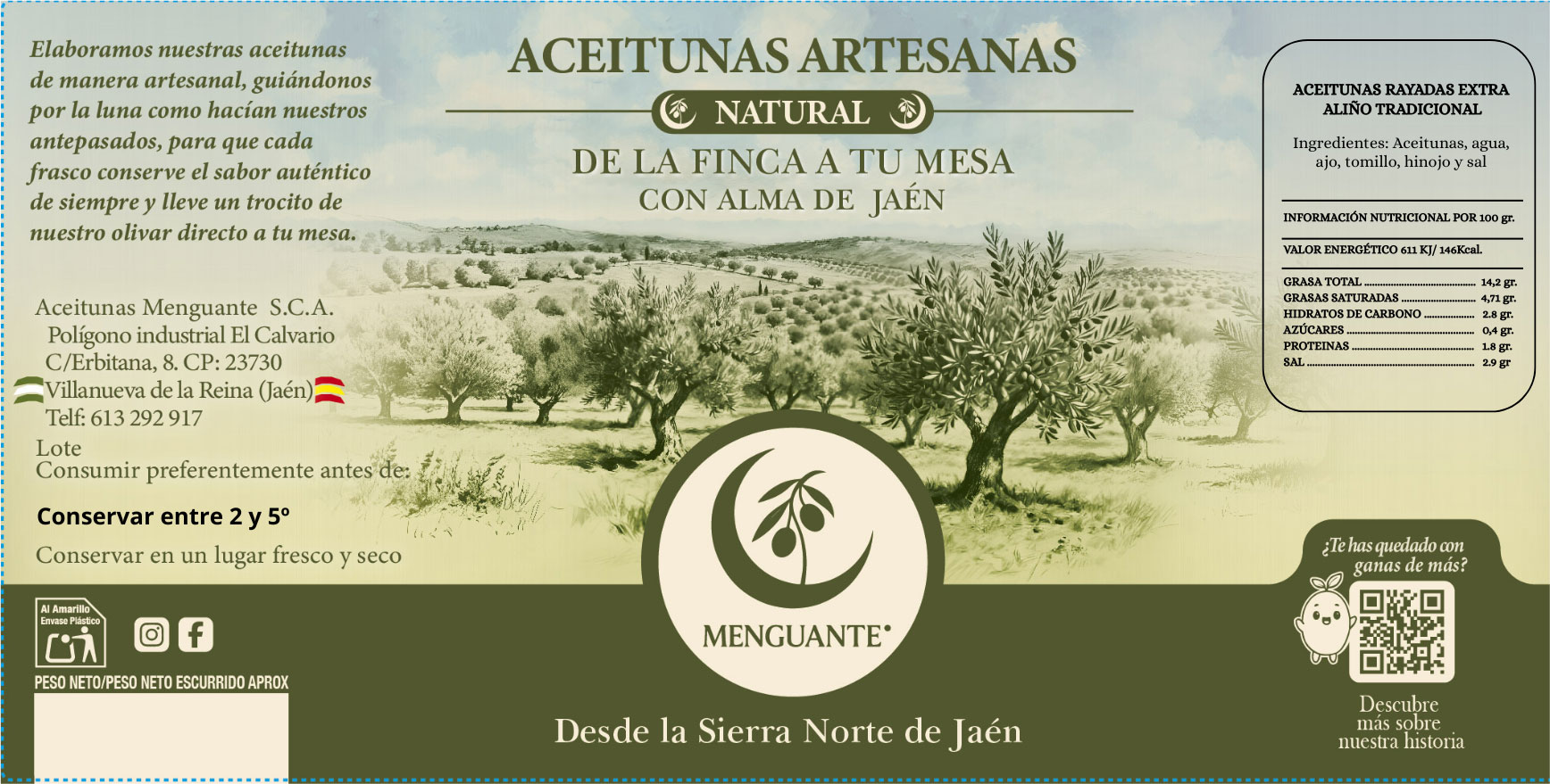 Aceitunas Artesanas aliño tradicional rajadas variedad Hojiblanca